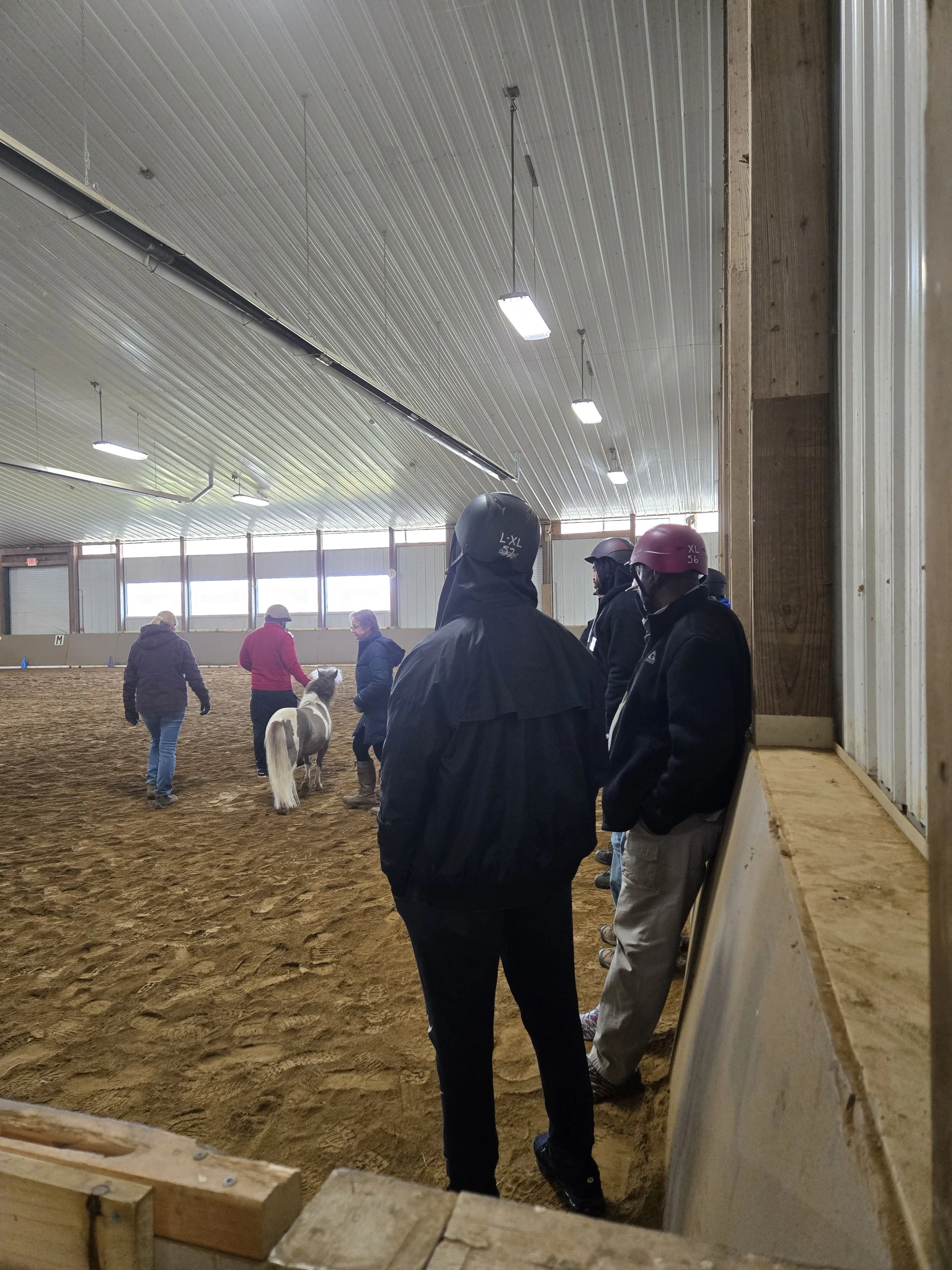 After grooming, clients often lead a horse—or a mini—around the arena.