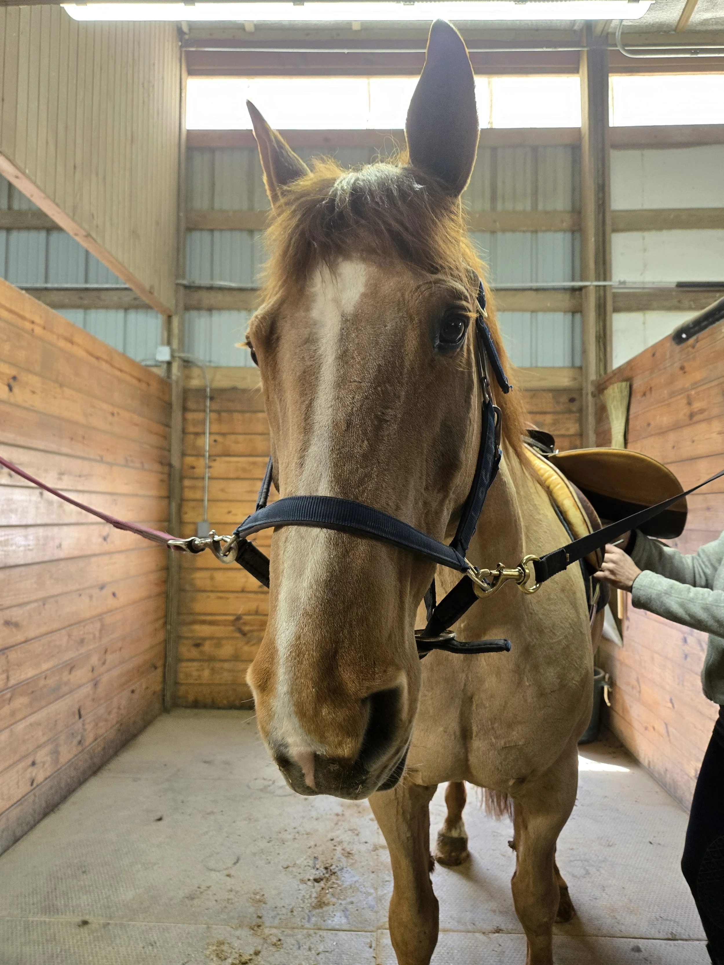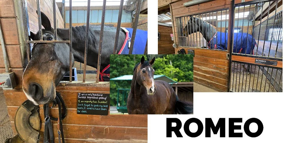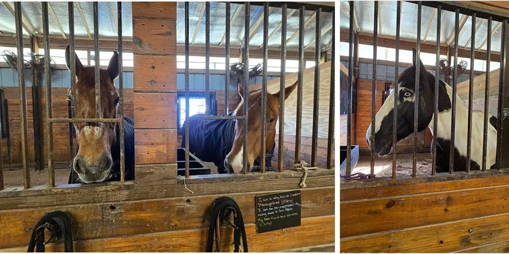 Romeo, the tallest horse on the farm at 17 hands, has a stride as long as his legs. Originally from Sweden, he came to the U.S. at just three years old. Now 22, the gelding lives up to his name—often fussing in his stall when he can’t see his companions, Dora and Frenchie. Dora nearly matches his size, while Frenchie is a smaller pony cross.